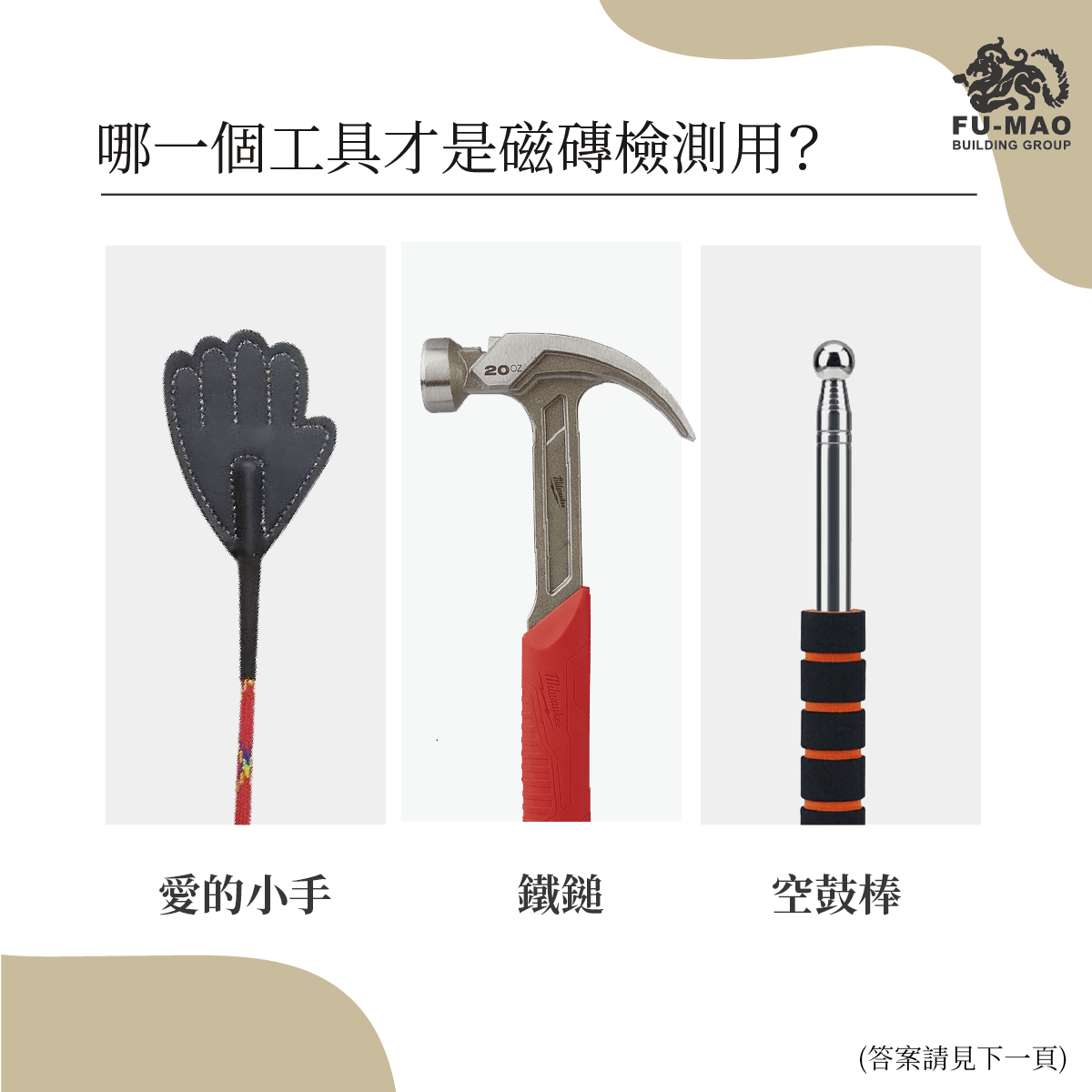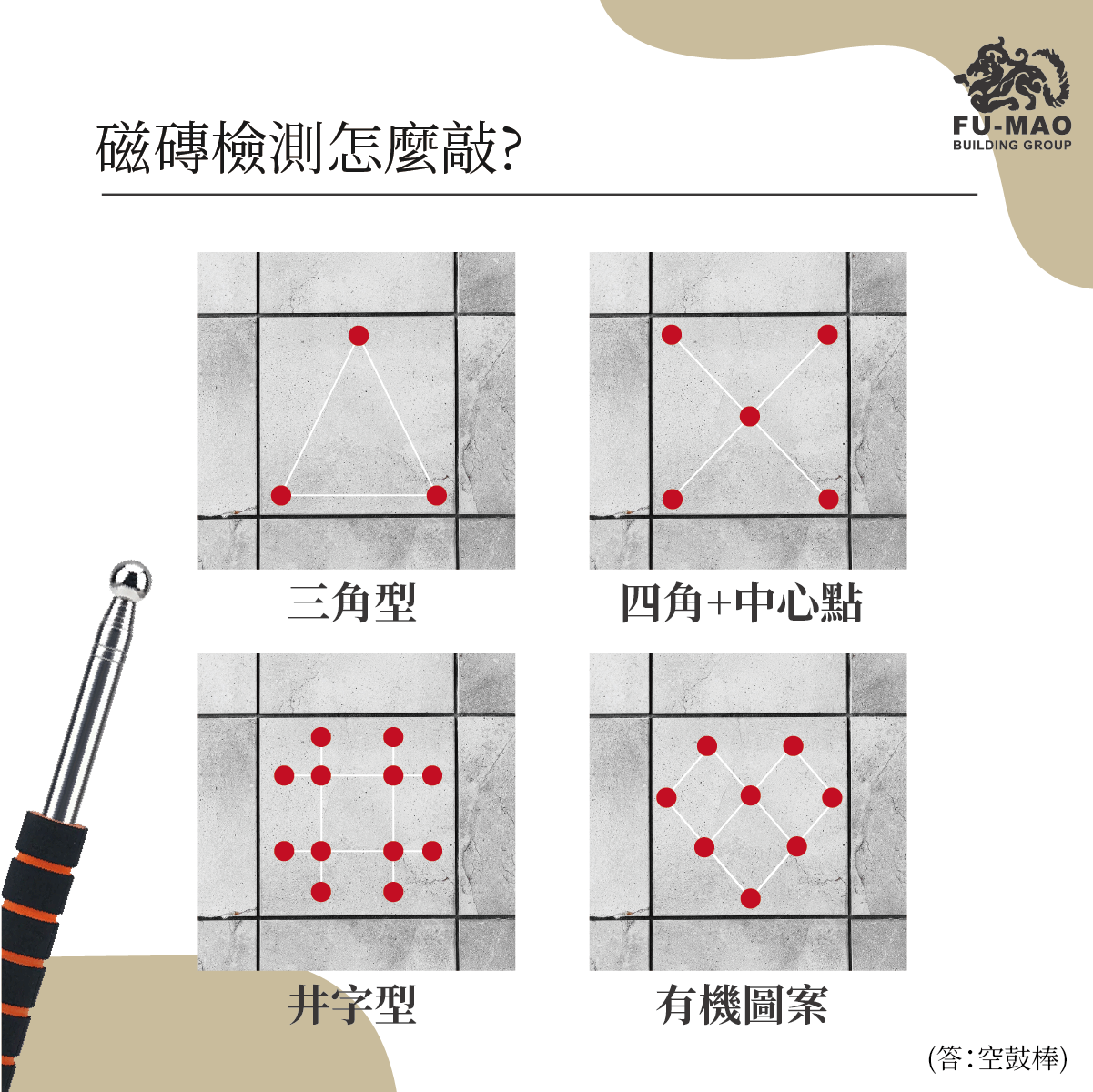 輕敲或撥弄磁磚,如有空鼓聲或浮動現象,立即處理